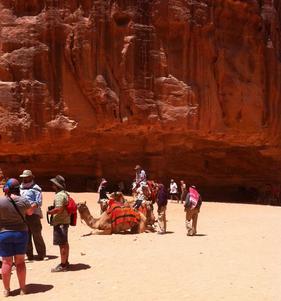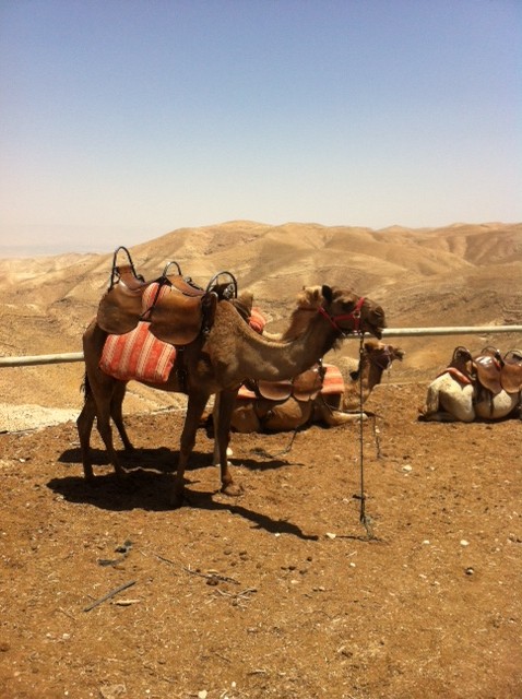 Camel ride anyone? Beware the smell! Notice the hills have no vegetation. Close to where Abraham settled in Canaan.