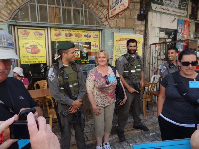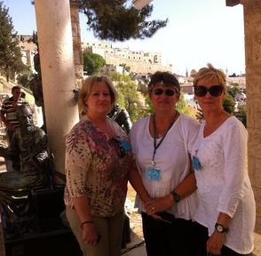 Kay and some of our group walking down Palm Sunday Road. Jesus rode a donkey.