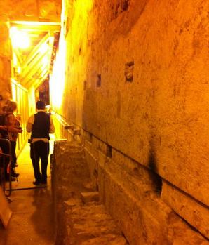 In the tunnel along the Western Wall. This foundation stone is 570 tons! How did they move them, center them, square thm to within a half an inch?