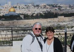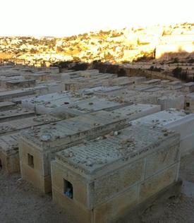 On the Mount of Olives at a Jewish Cemetary . Behind us is the Kidron Valley and then the walls of Jerusalem.